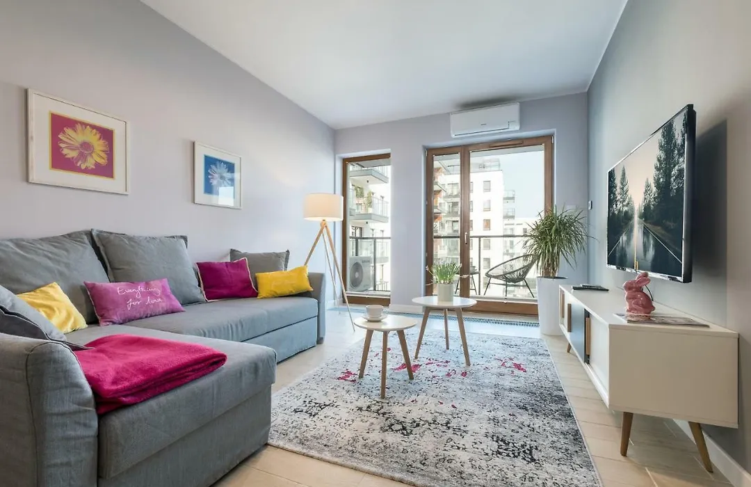 The 65 m² Raya Mansion Warsaw Apartment offers easy entry to such city sights as CH Panorama, situated approximately 5 minutes' walk away. This 1-bedroom apartment includes a patio with a kitchenette.